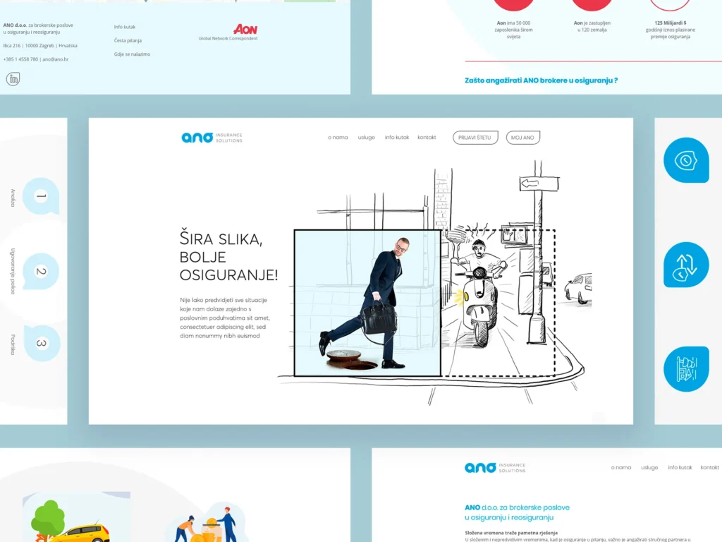 For ANO, we designed the logo, defined graphic standards, designed the website, designed the campaign “BIGGER PICTURE – BETTER INSURANCE”, designed the interface of the mobile application, designed corporate stationery and promotional materials.